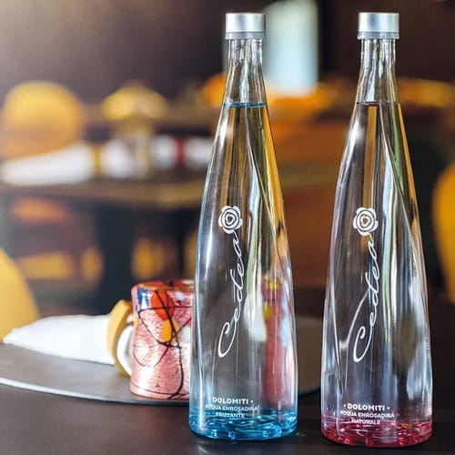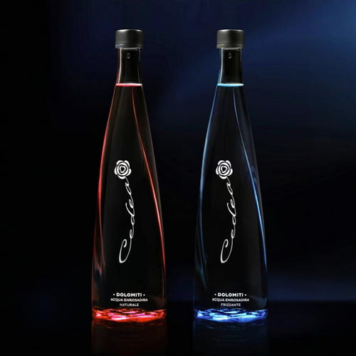 Historia Cedea jest tak niezwykła jak jej smak. Woda wypływa ze skalnej szczeliny na wysokości 1500 metrów, a jej podróż z lodowca Marmolady na powierzchnię jest niezwykle krótka. Dzięki temu zachowuje swoją pierwotną czystość i bardzo niską zawartość minerałów. Sama nazwa „Cedea” wywodzi się z lokalnego języka ladyńskiego i jest związana z „enrosadirą” – magicznym zjawiskiem, gdy szczyty Dolomitów o wschodzie i zachodzie słońca przybierają różowo-fioletową barwę. Pijąc ją, nie możemy oprzeć się wrażeniu, że obcujemy z naturą, która daje siłę i wytchnienie.DESIGN I KRYSTALICZNA CZYSTOŚĆ: