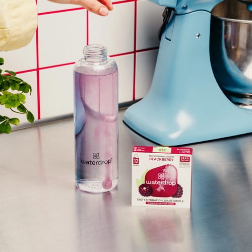 Waterdrop Microdrink Blackberry to bezcukrowy microdrink, który zamienia wodę w orzeźwiający napój o pełnym, owocowym smaku jeżyny, jagody i jabłka. Naturalne ekstrakty tworzą intensywny aromat i smak inspirowany dojrzałymi owocami, bez sztucznych dodatków i kalorii.