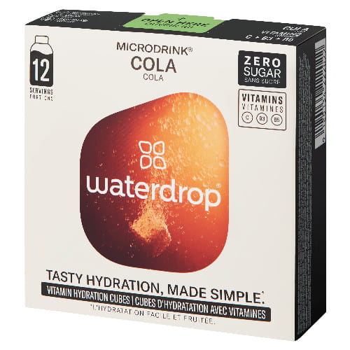 Składniki kostek Waterdrop Microdrink Cola: kwas: kwas cytrynowy; barwnik: karmel amoniakalno-siarczynowy; regulatory kwasowości: węglany sodu, węglany potasu; kwas: kwas jabłkowy; aromat naturalny, ekstrakt z zielonej kawy, substancja słodząca: sukraloza; regulator kwasowości: węglan wapnia; witamina C, ekstrakt z orzechów koli, błonnik cytrusowy, ekstrakt z kawy, niacyna, kwas pantotenowyWYBÓR DJOKOVICIA I HURKACZA: